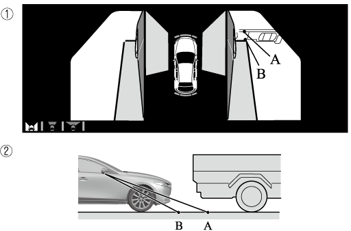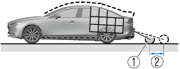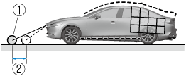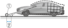 If there is a steep up or down grade in the road at the front or rear of the vehicle, obstructions picked up by the camera can appear farther or closer than the actual distance from the vehicle.