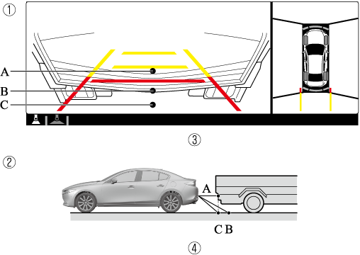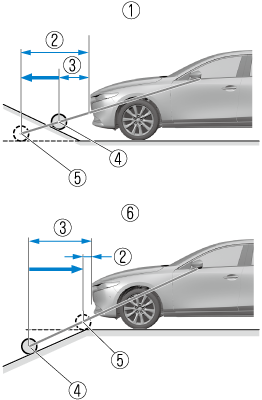 If the vehicle is on a slope, obstructions taken by the camera can appear farther or closer than the actual distance from the vehicle.