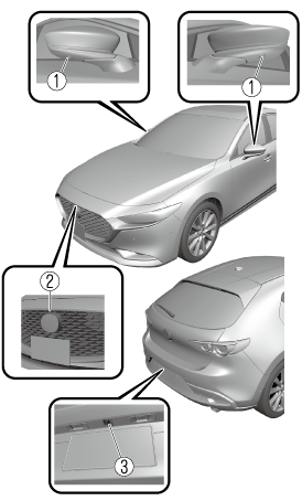 Your vehicle is equipped with a front camera, side cameras, and a rear camera. The 360° View Monitor uses each camera.