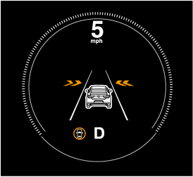 If there is a possibility of a collision with an approaching vehicle, a warning indication is displayed on the following display (amber arrow) and the warning sound is activated at the same time.