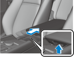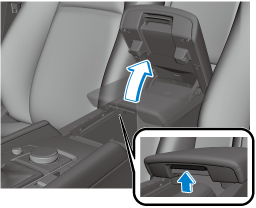 If a rear seatback is folded, open/close the console lid while it is slid to the 1st step. The console lid and the rear seat (head restraint) will contact each other and the console lid cannot be opened/closed while it is slid to the 2nd step.