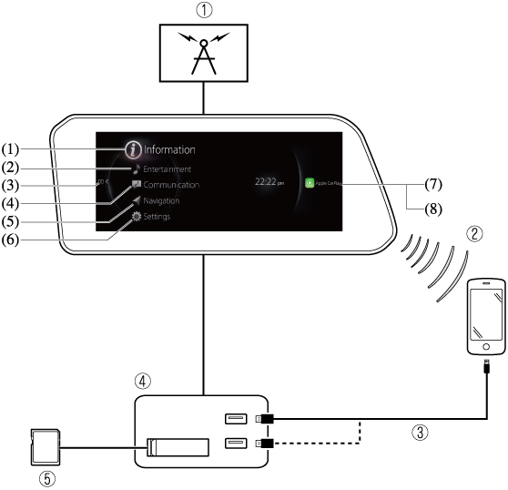 You can use Apple CarPlay™ by connecting an iPhone® compatible with Apple CarPlay™ to the USB slot. |