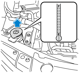 The Low Washer Fluid Level Warning Indication/Warning Light (if equipped) turns on.