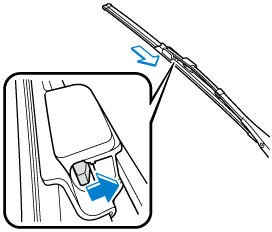 3. Slide the blade component in the direction of the arrow while pressing the wiper arm tab to remove the blade component from the wiper arm.