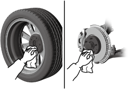 Remove dirt and grime from the mounting surfaces of the wheel and hub, including the hub bolts, with a cloth.