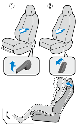 To change the seatback angle, lean forward slightly while raising the lever. Then lean back to the desired position and release the lever.