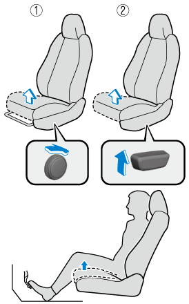 With your right foot set on the accelerator pedal, adjust the height on the front edge of the seat bottom so that the back of your knees lightly contacts the front edge of the seat bottom.