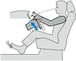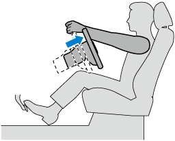 With your back resting against the seatback, extend both arms, place them on the top of the steering wheel, and pull the steering wheel towards you to the position of your wrists.