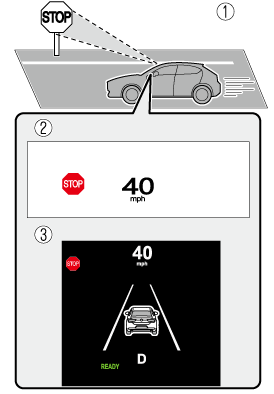 The TSR helps prevent the driver from overlooking traffic signs and provides support for safer driving. Depending on the weather conditions or problems with traffic signs, a traffic sign may not be recognized or a traffic sign different from the actual traffic sign may be displayed. Always make it your responsibility as a driver to check the actual traffic signs. Otherwise, it could result in an accident.