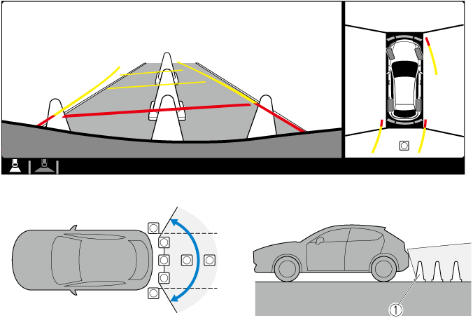 The parking sensor detection range has limitations. For example, obstructions closing in from the side and objects short in height may not be detected. Always confirm the safety around the vehicle visually when driving.