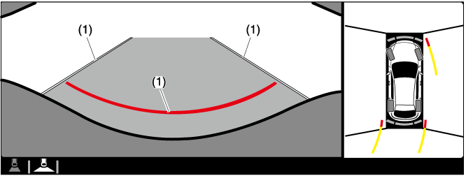 These guide lines indicate the approximate width of the vehicle and distance to a point measured from the rear of the vehicle (from the end of the bumper).