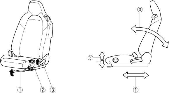 The adjustments for the driving position recommended by Mazda are done using the following procedures.