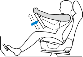 With your back resting against the seatback, extend both arms, place them on the top of the steering wheel, and pull the steering wheel towards you to the position of your wrists.