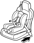 Place the child-restraint system on the seat without putting your weight on the seat and secure the child-restraint system with the lap portion of the lap/shoulder belt. See the manufacturer's instructions on the child-restraint system for belt routing instructions.