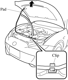 When closing the hood, do not push it excessively such as by applying your weight. Otherwise, the hood could be deformed.