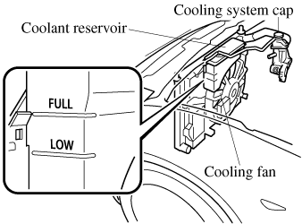 If the coolant reservoir is empty or new coolant is required frequently, consult an Authorized Mazda Dealer.