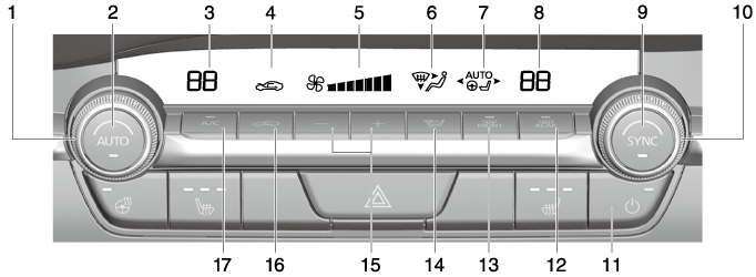 The display differs depending on the climate controls, or whether or not the seat warmer and steering warmer are equipped.