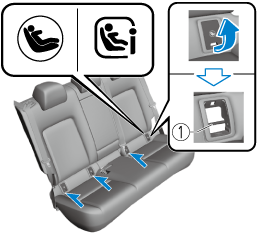 The ISOFIX/LATCH*1 lower anchors marking on the cover indicates the position of the ISOFIX/LATCH*1 lower anchors for the attachment of a child-restraint system.