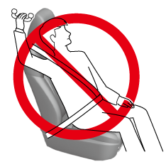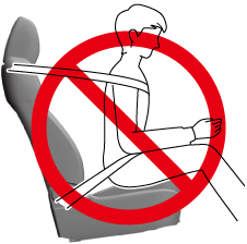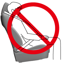 Adjust the front seats as far back as possible and always sit upright against the seatbacks with seat belts worn properly.