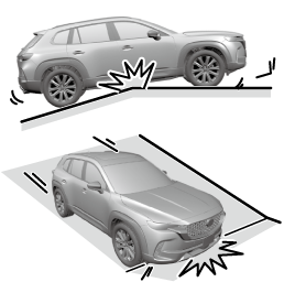 Use care not to damage the vehicle's underbody, bumpers or muffler(s) when driving under the following conditions:
