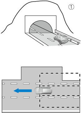 Under the following conditions, the rear side radar sensor cannot detect target objects or it may be difficult to detect them.