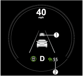 The setting status and operation conditions of the MRCC with Stop & Go function are indicated on the multi-information display and the active driving display.