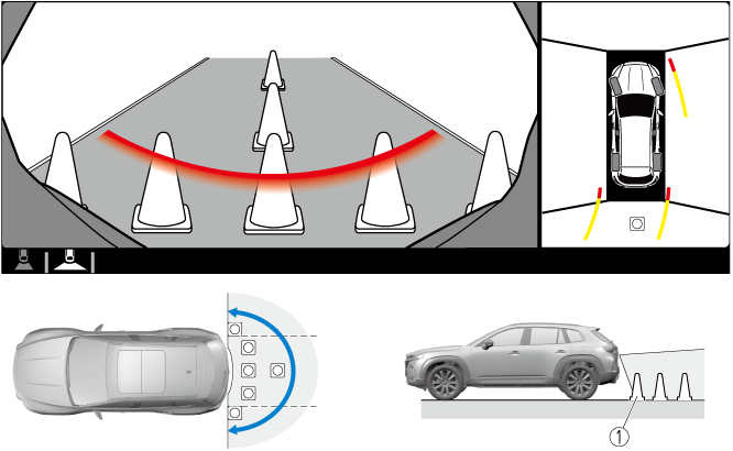 Use the top view/rear wide view to assist in checking the safety of the surrounding area when accelerating from a stop, parking, or stopping the vehicle.