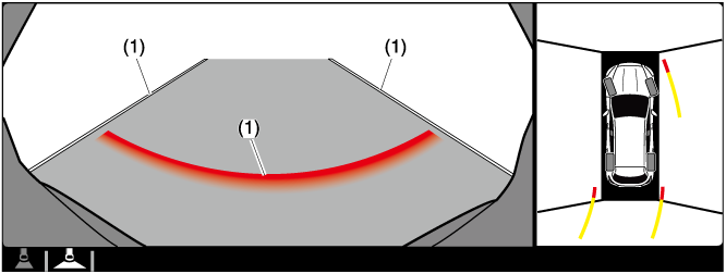 These guide lines indicate the approximate width of the vehicle and distance to a point measured from the rear of the vehicle (from the end of the bumper).