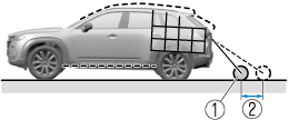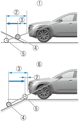 If there is a steep up or down grade in the road at the front or rear of the vehicle, obstructions picked up by the camera can appear farther or closer than the actual distance from the vehicle.