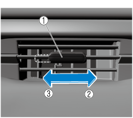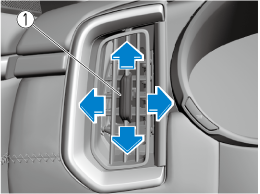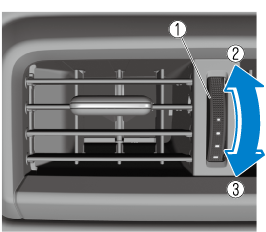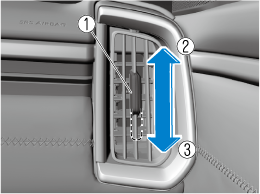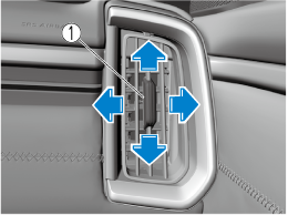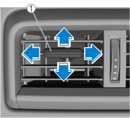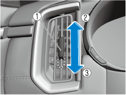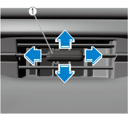 The figure indicates the air vent on the left side of the instrument cluster. The operation direction for the air vent on the right side of the instrument cluster is symmetrical with the air vent on the left side.