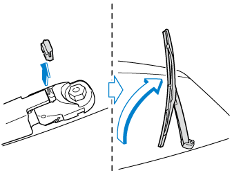 3. Firmly rotate the wiper blade to the right until it unlocks, then remove the blade.