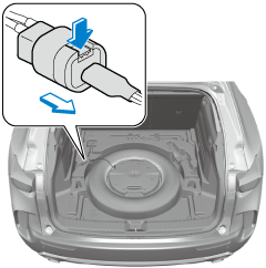 Turn the spare tire hold-down bolt counterclockwise and remove the sub-woofer and the spare tire.