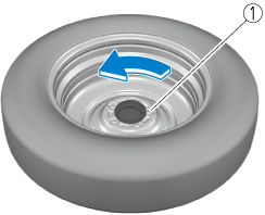 If the spare tire hold-down bolt cannot be loosened, hold the edge of the tire and turn it counterclockwise until the spare tire hold-down bolt rotates.
