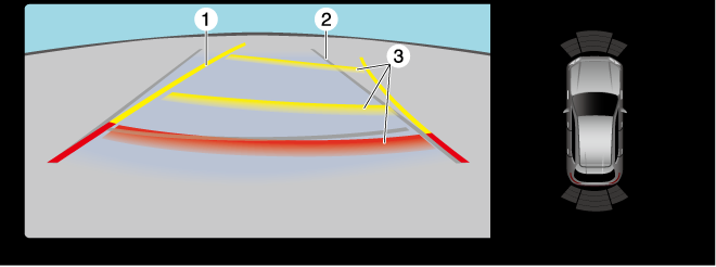 These guide lines indicate the approximate distance to a point measured from the rear of the vehicle (from the end of the bumper).