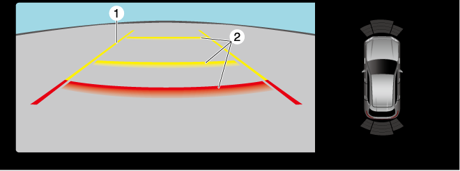 Indicates the approximate width of the vehicle. Does not display when the steering wheel is operated in a straight-ahead position. |