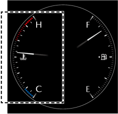 Displays the engine coolant temperature. The blue range of the gauge indicates that the engine coolant temperature is low, and the red range of the gauge indicates that the engine coolant temperature is high and overheating.
