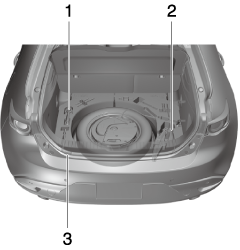 Remove the tiedown eyelet, the jack lever and the lug wrench or equivalent from the luggage compartment.