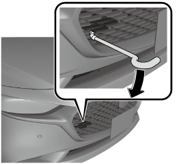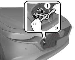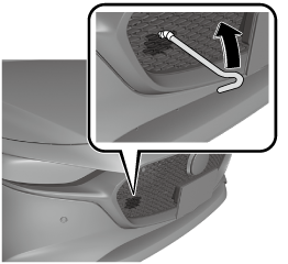 Wrap a flathead screwdriver or jack lever or a similar tool with a soft cloth to prevent damage to a painted bumper, and open the cap located on the front or rear bumper.