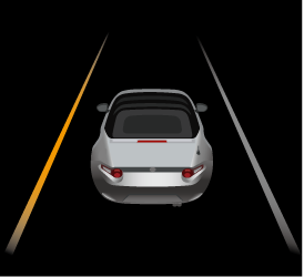 The LDWS operates only on the side that detects white lines (yellow lines).