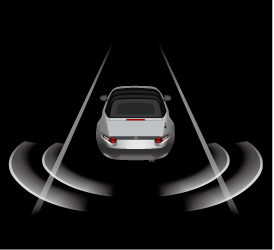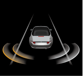 The Vehicle Exit Warning may operate with stationary objects on the road or the roadside (such as guardrails, sidewalls, and parked vehicles).