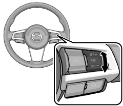 If the distance between vehicles control is disabled using the Mazda Connect, the system switches to the cruise control. At this time, the MRCC switch functions as the cruise control switch.