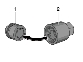Place the special key on top of the antitheft lug nut, and be sure to hold the key square to it. If you hold the key at an angle, you may damage both key and nut. Do not use a power impact wrench.