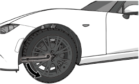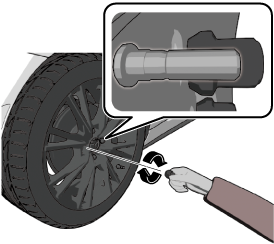 Loosen the lug nuts by turning them counterclockwise one turn each, but do not remove any lug nuts until the tire has been raised off the ground.