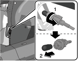 If you are changing the right bulb, start the engine, turn the steering wheel all the way to the right, and turn off engine. If you are changing the left bulb, turn the steering wheel to the left.