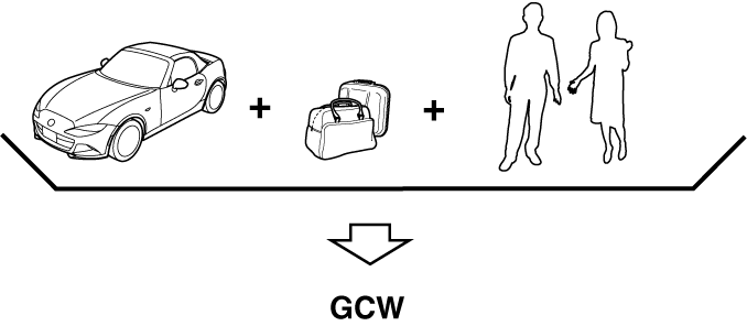 GVW (Gross Vehicle Weight) is the Vehicle Curb Weight + cargo + passengers.