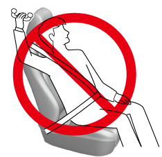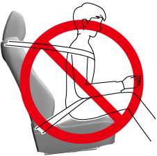 Adjust the front seats as far back as possible and always sit upright against the seatbacks with seat belts worn properly.