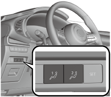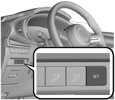 The seat adjustment switch/SET switch/outer mirrors/active driving display for the driver's seat is operated to adjust the position.