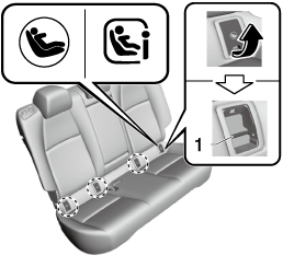 The ISOFIX/LATCH*1 lower anchors marking on the cover indicates the position of the ISOFIX/LATCH*1 lower anchors for the attachment of a child-restraint system.