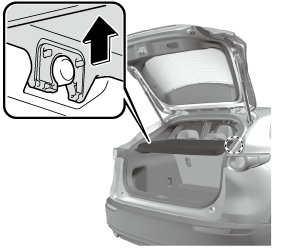 Press the luggage compartment cover upward from near the pins and remove the luggage compartment cover from the pins.