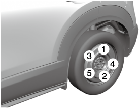 Loosen the lug nuts by turning them counterclockwise one turn each, but do not remove any lug nuts until the tire has been raised off the ground.